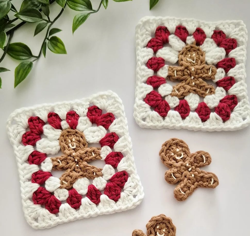 Bring a touch of Christmas charm to your crochet projects this festive season! This delightful design allows you to create cheerful gingerbread men shaped granny squares using any yarn and hook size you prefer.