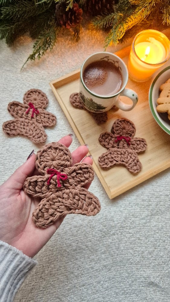 Add a festive touch to your home with this adorable set of four crochet Gingerbread Man coasters. Each one is handmade with care using high-quality yarn, featuring the charming details that make the Gingerbread Man Christmas favourite.