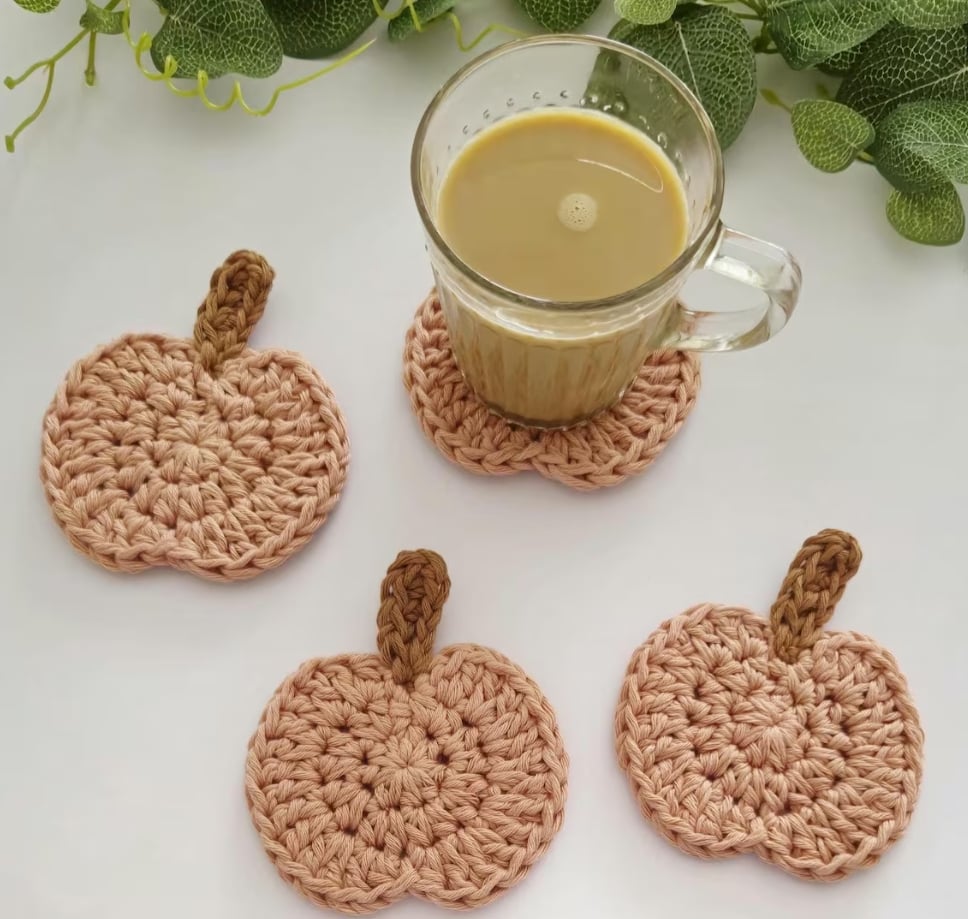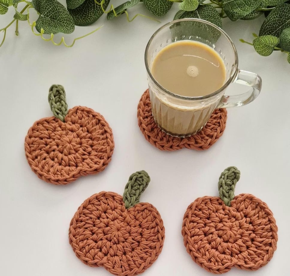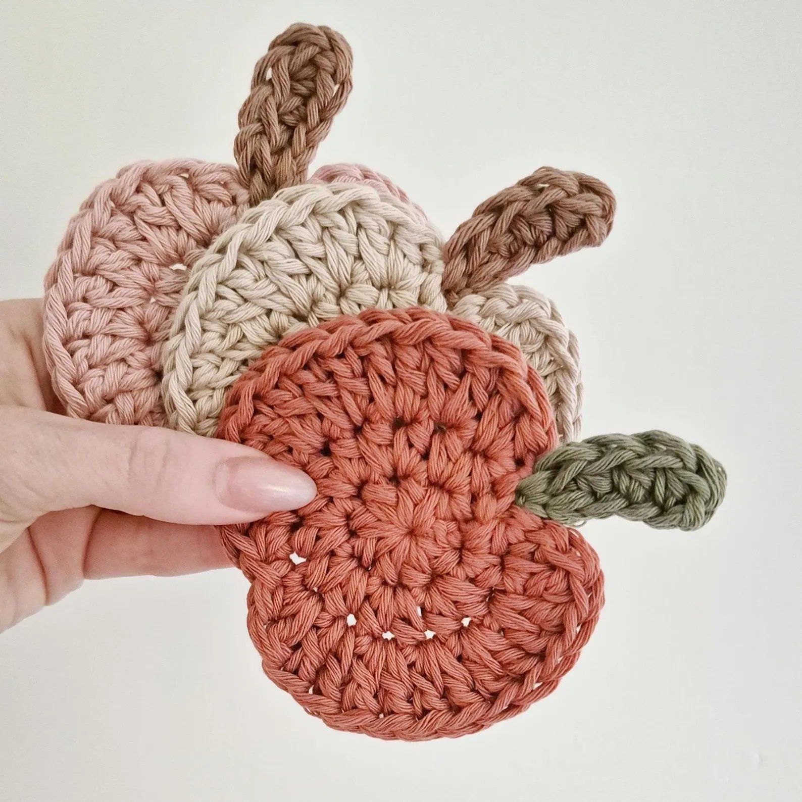 Quick and easy pumpkin coaster crochet pattern. It's simple stitches make it beginner friendly. This pattern is made using 2 strands of aran yarn together and a 6.5mm hook. Meaning the 3 round pattern works up super fast!