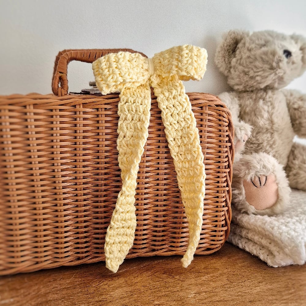 Wether you're adding bows to bags, gifts, accessories, or home decor, this Floppy Bow crochet pattern is beginner friendly and ideal for scrap yarn. This pattern also includes 24 ideas for how to style and use your finished Floppy Bows.
