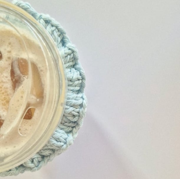 The pattern features two trim options, a playful ruffle or a classic scallop. You can customise the finish to suit your style. With a flexible design, it fits a wide range of cups and bottles. Making it ideal for everyday use or gifting.